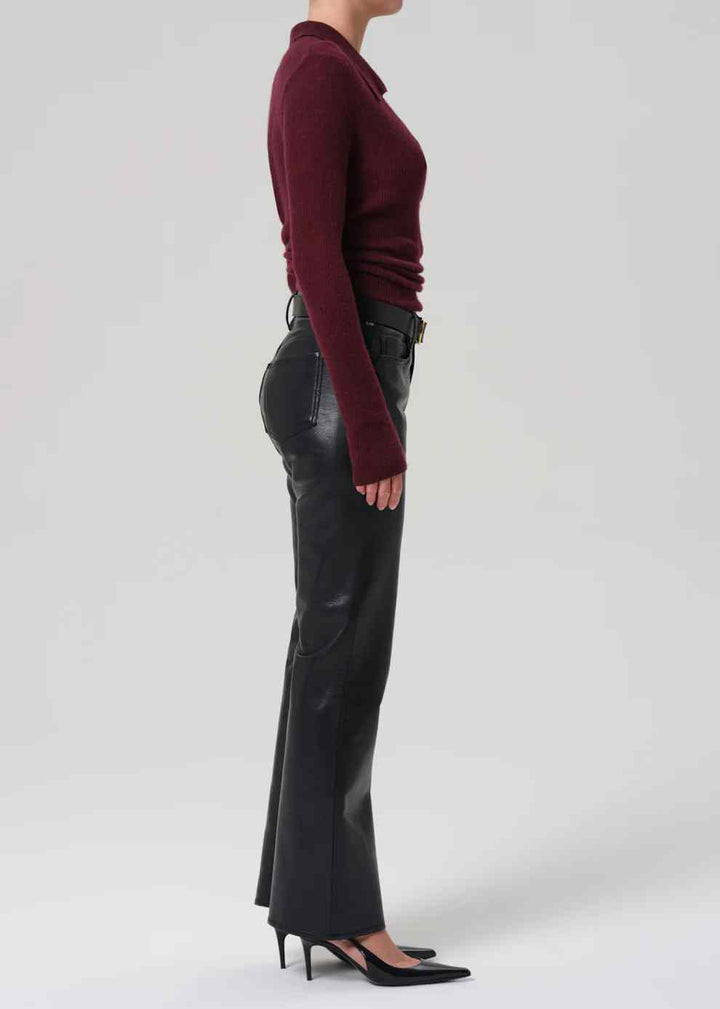 The Genova Low Rise Boot is crafted from buttery recycled leather with slight stretch for ease. The true black bootcut silhouette sits low on the waist and falls to a full-length finish with a subtle flare at the hem. Perfect paired with fitted tops or tailored shirts for a polished, versatile look.