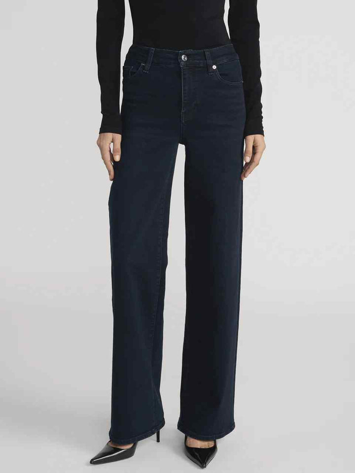 The bestselling silhouette is designed with a flattering high-rise waist, fitted hip, and subtle wide-leg flare that hits at the floor. Crafted from sustainable, super-stretch denim for effortless all-day wear.