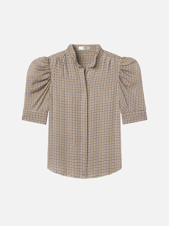 At once modern and feminine, this silk blouse has become a FRAME favourite. Featuring a high neckline and subtle puffed sleeves with ruched detailing, it easily complements any of your denim.