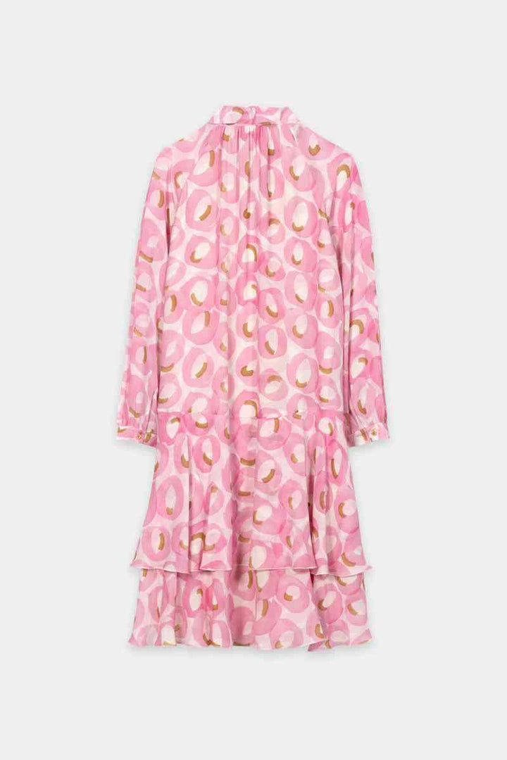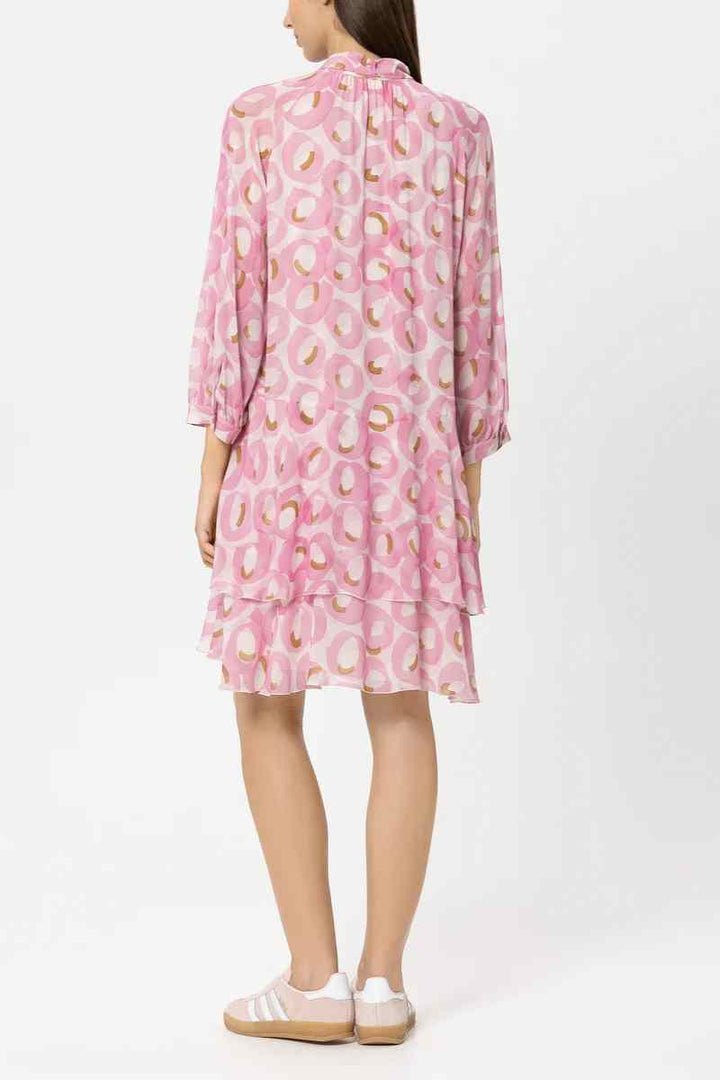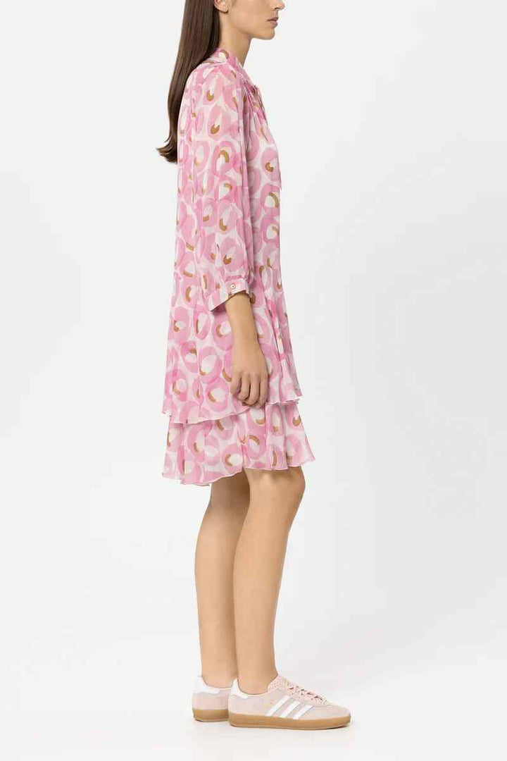 Boho dress in a short, feminine flared fit with a retro design on semi-transparent viscose crêpe. The modern 70s silhouette is accentuated by a flap, ¾-length sleeves, a button placket and flowing hem flounces.