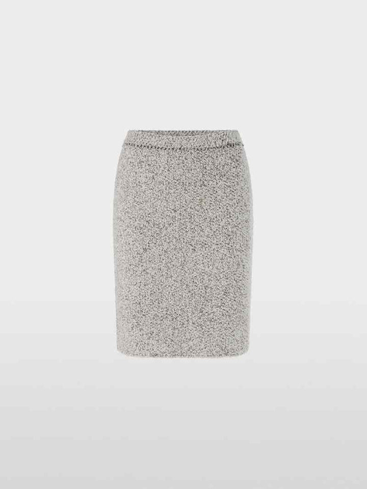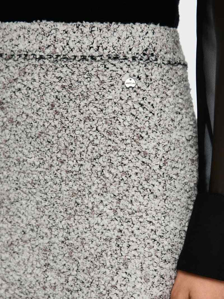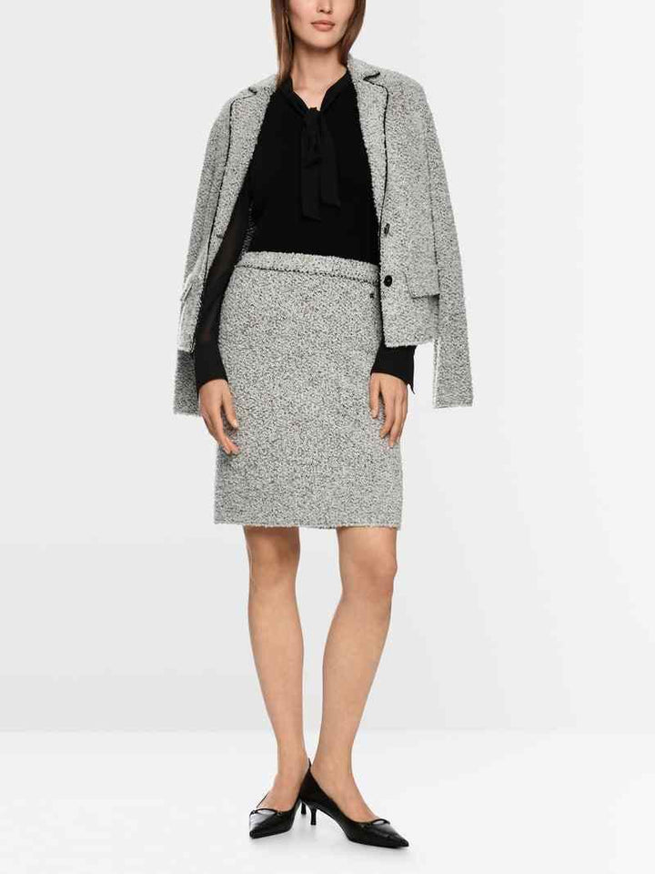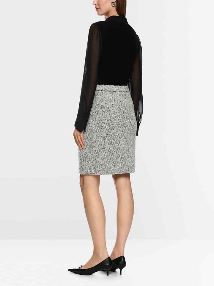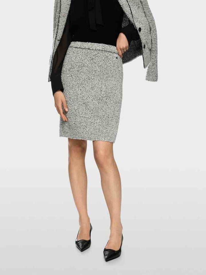 In a high-quality wool blend with a bouclé look, this knee-length skirt impresses with its straight cut and comfortable lining. It is ideal for stylish office looks or elegant everyday outfits.