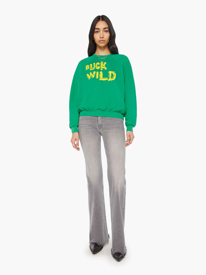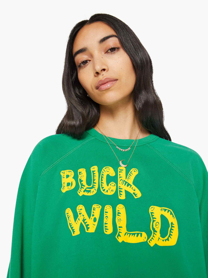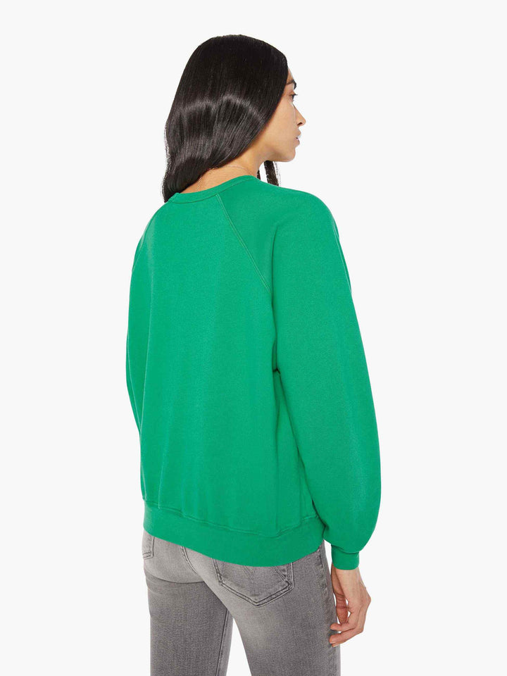 An oversized raglan sweatshirt with a crewneck, ribbed hems and a slightly cropped fit. Made from super-soft 100% cotton, the sweatshirt is designed in green with yellow text on the front.