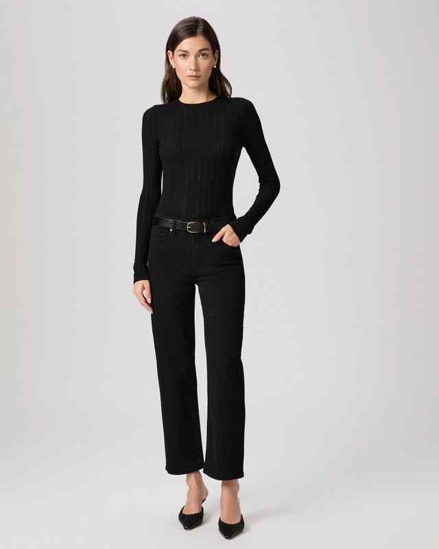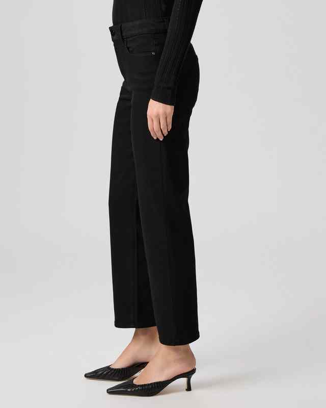 The Mason Ankle is a mid-rise straight leg with an ankle length inseam. In the best-selling black shadow wash, this pair is cut from TRANSCEND, the original high-stretch fabric that redefined comfort in denim.