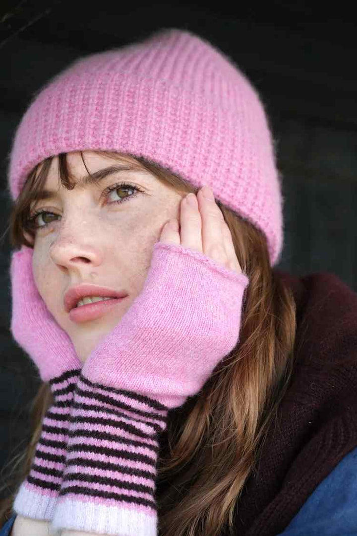 It’s a simple but special winter wardrobe staple. Knitted in a tuck rib stitch for a beautifully textured finish and extra warmth. These beanies have a gorgeous fluffy quality for being knitted with super soft Angora yarns.
