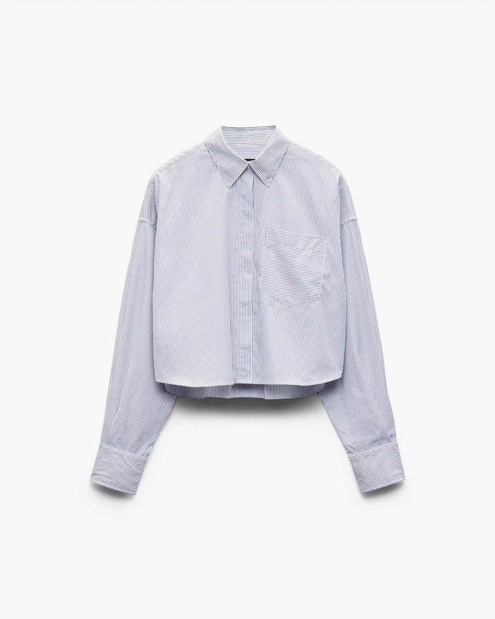 Not your basic button-up. A modern twist on your favorite striped shirt, cut from lightweight cotton poplin with a cropped, boxy silhouette made for now.