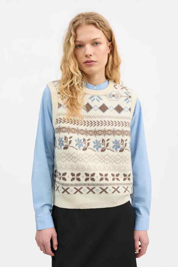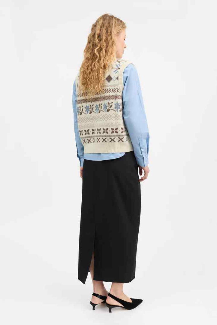 Vero Vest has a round neck and is knitted from 100% merino wool. The armholes, neck and hem are finished with a rib.