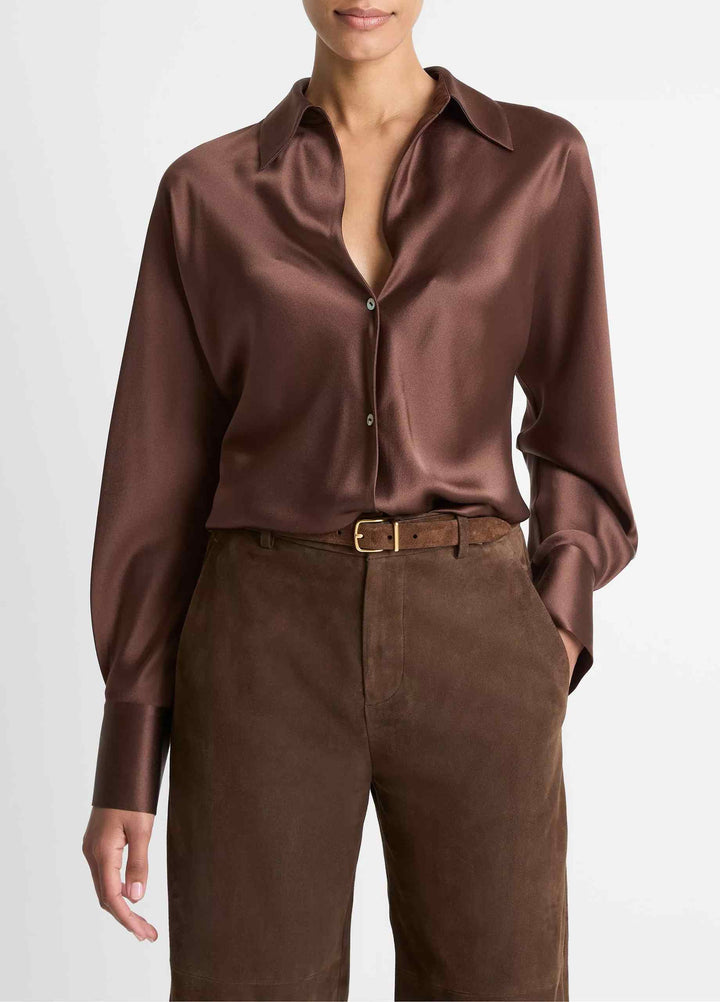 Cool in summer and insulating in the winter, a sumptuous silk shirt will readily take on the lion's share of the work in your wardrobe. This one is cut on the bias so it drapes like a dream.
